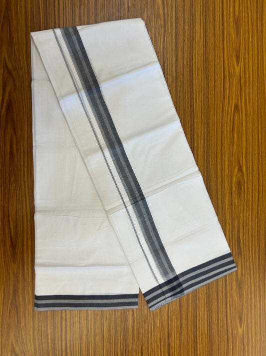 20% Discount ! Kaitharikada Balaramapuram 100% Cotton Pure White Double Mundu/Dothi - 100x100 - 1.25 inch Black Shaded Striped Kara 3.90 mtr (8 muzham) - 76 KK5294 THI
