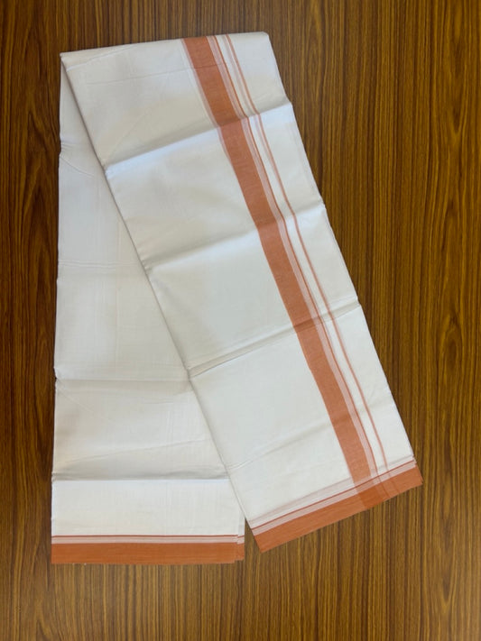 20% Discount ! Kaitharikada Balaramapuram 100% Cotton Pure White Double Mundu/Dothi - 100x100 - 1.5 inch Light Orange Shaded Striped Kara 3.90 mtr (8 muzham) - 80 KK5294 THI