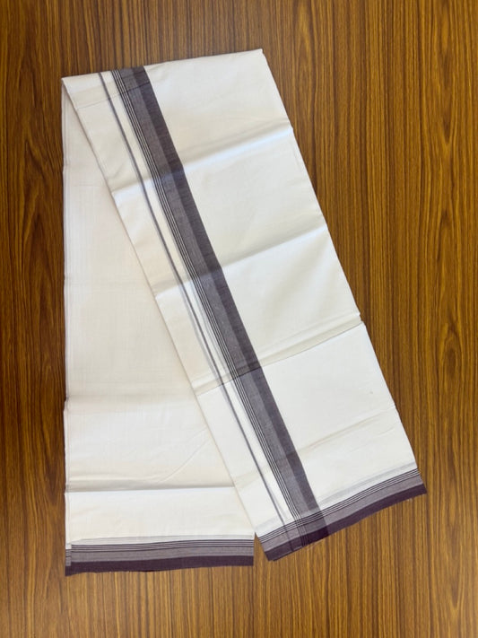 20% Discount ! Kaitharikada Balaramapuram 100% Cotton Pure White Double Mundu/Dothi - 100x100 - 1.75 inch Black & Purple Shaded Striped Kara 3.90 mtr (8 muzham) - 68 KK5294 THI