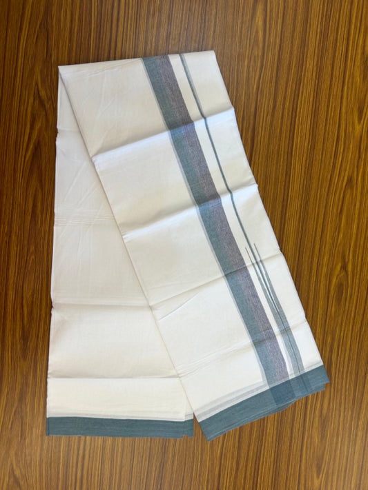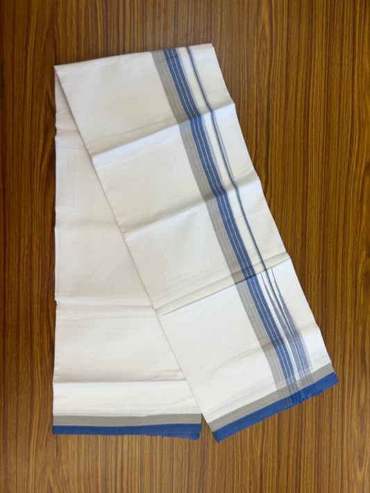 20% Discount ! Kaitharikada Balaramapuram 100% Pure Cotton Double Pure White Mundu/Dhoti - 100x80 - 1.5 inch Silver Kasav Blue & Ash Grey striped chutty 3.90 mtr (8.5 muzham) - 85 KK5287 PMC