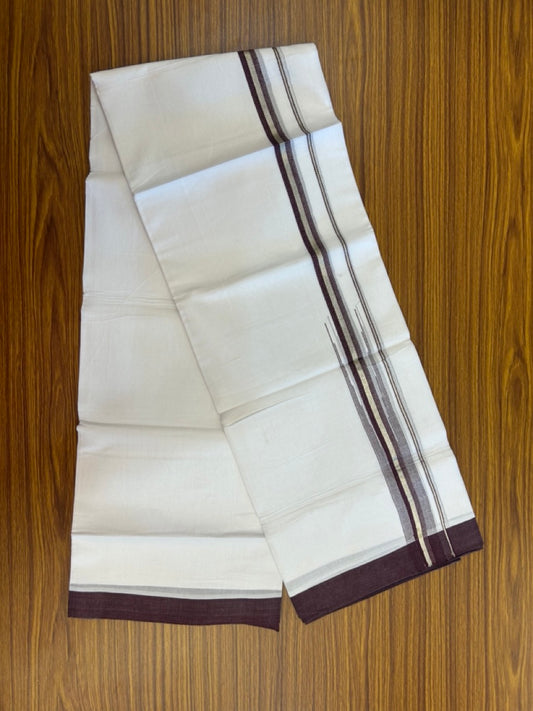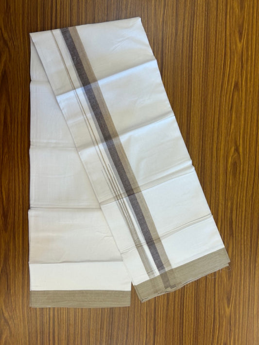 20% Discount ! Kaitharikada Balaramapuram 100% Pure Cotton Double Pure White Mundu/Dhoti - 100x80 - 1.25 inch Sand Brown & Dark Brown shaded striped chutty 3.90 mtr (8.5 muzham) - 83 KK5287 PMC