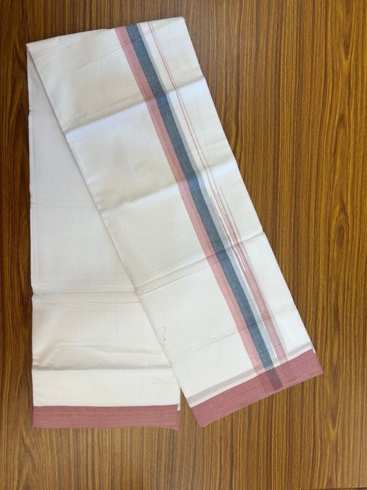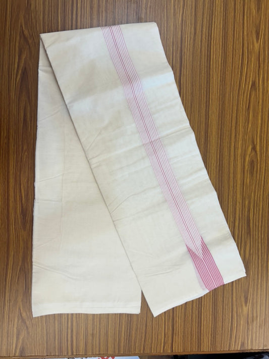 20%Offer! Kaitharikada Balaramapuram 100% Cotton Double Off White - (Unbleached) Mundu/Dhoti - 100x100 - 1.5 inch 12 Line Puliyilakkara Pink Chutty Kara- 3 KK5290 ASH