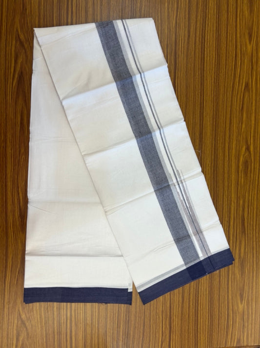 20% Discount ! Kaitharikada Balaramapuram 100% Pure Cotton Double Pure White Mundu/Dhoti - 100x80 - 1.5 inch Navy Blue shaded striped chutty 3.90 mtr (8.5 muzham) - 77 KK5287 PMC