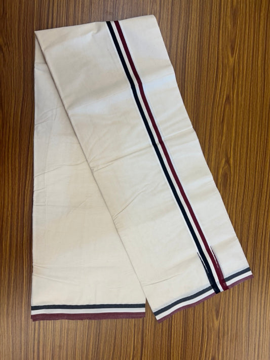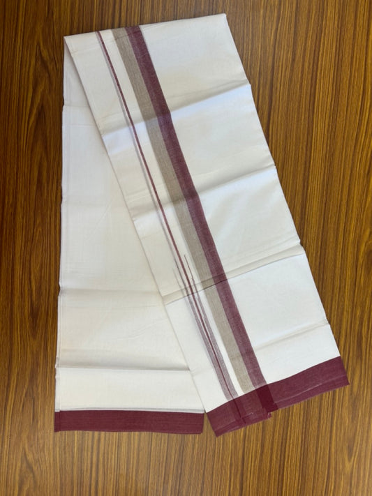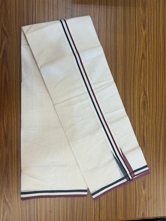 Admk Veshti 20% Discount !! Kaitharikada Balaramapuram Double Off white - (Unbleached) Mundu/Dhoti - 100X100 - 1.5 inch Puliyilakkara Maroon & Black Striped Chutty Kara - Big Size Dhoti - 1 KK5290 ASH