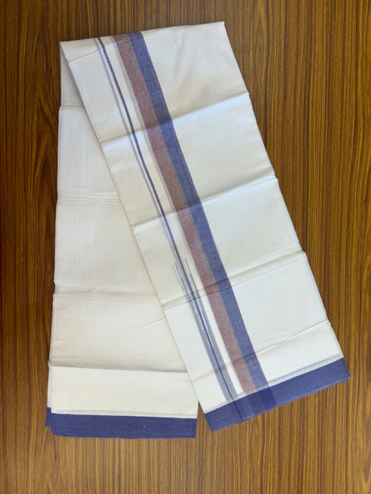 20% Discount ! Kaitharikada Balaramapuram 100% Pure Cotton Double Pure White Mundu/Dhoti - 100x80 - 1.5 inch Violet & Maroon shaded striped chutty 3.90 mtr (8.5 muzham) - 82 KK5287 PMC