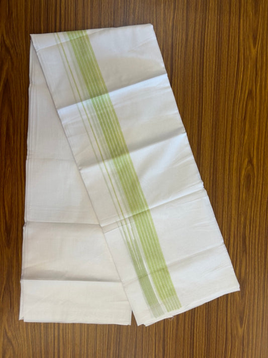 20% Discount ! Kaitharikada Balaramapuram 100% Pure Cotton Double Pure White Mundu/Dhoti - 100x80 - 1.5 inch Mint Green shaded striped chutty 3.90 mtr (8.5 muzham) - 76 KK5287 PMC