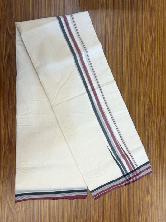 Dmk Veshti - 20% Discount! KaithariKada 100% Cotton off white Double - (Unbleached) Mundu/Dhoti - 100X100 -2 inch Puliyilakkara Black & Maroon Chutty kara - 10 KK5290 ASH