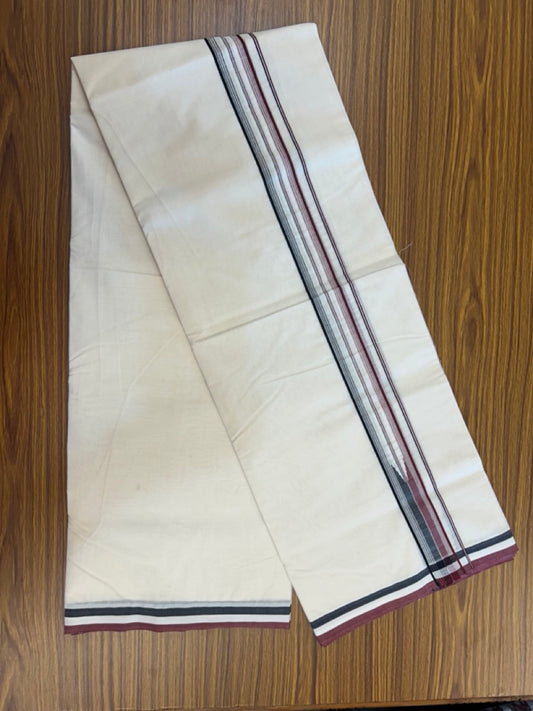 Admk Veshti - 20% Discount! KaithariKada 100% Cotton off white Double - (Unbleached) Mundu/Dhoti - 100X100 - 1.5 inch inch Black Maroon & White Striped kara - 6 KK5290 ASH