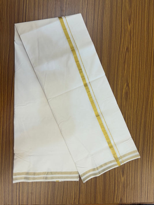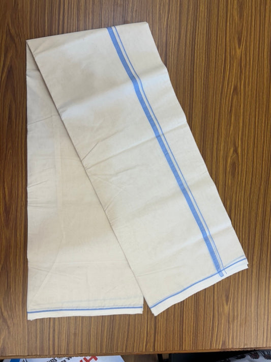 25% Discount!! Signature Kaitharikada Exclusive Single Dhoti - 100% Cotton Balaramapuram Handloom Single Mundu/Dhoti - Off White (Unbleached) 0.25 inch Puliyilakkara Gold Kasav & Lavender Blue Chutty Kara (2 meter / 4 muzham) - 4 KK5293 KAI