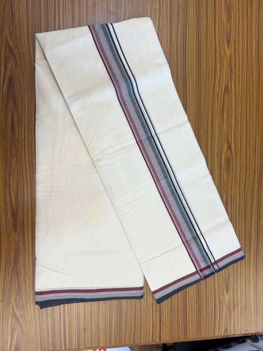 Admk Veshti - 20% Discount! KaithariKada 100% Cotton off white Double - (Unbleached) Mundu/Dhoti - 100X100 - 2 inch Puliyilakkara Black White & Maroon Shaded Chutty kara - 2 KK5290 ASH