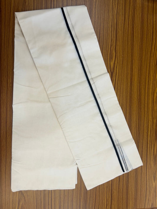 25% Discount!! Signature Kaitharikada Exclusive Single Dhoti - 100% Cotton Balaramapuram Handloom Single Mundu/Dhoti - Off White (Unbleached) 0.5 inch Puliyilakkara Silver Kasav & Black Chutty Kara (2 meter / 4 muzham) - 2 KK5293 KAI