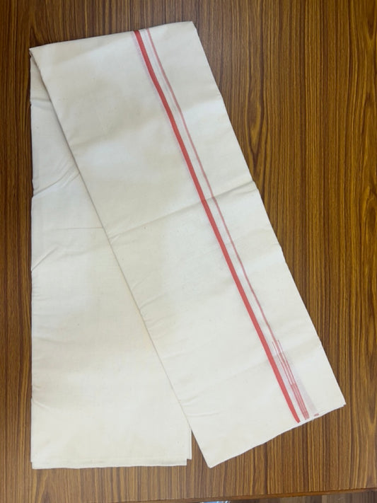 25% Discount!! Signature Kaitharikada Exclusive Single Dhoti - 100% Cotton Balaramapuram Handloom Single Mundu/Dhoti - Off White (Unbleached) 0.25 inch Puliyilakkara Silver Kasav & Peach Chutty Kara (2 meter / 4 muzham) - 3 KK5293 KAI