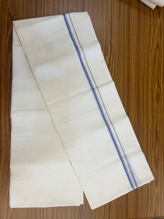 20% Discount! KaithariKada Balaramapuram 100% Cotton Double Off white - (Unbleached) - Mundu/Dhoti- 100x100 - 1 cm Blue Shaded Thin Kara - 4 mtr ( 8.5 muzham)- 5 KK5290 ASH