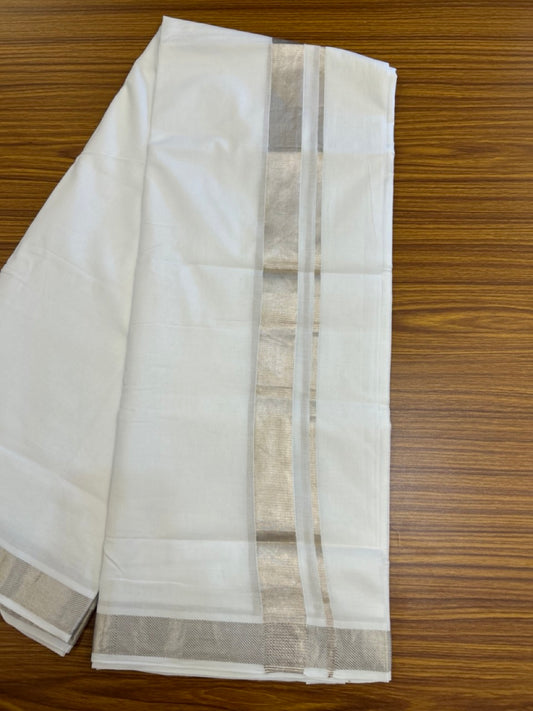 20% Discount! KaithariKada Balaramapuram 100% Cotton Double Pure white Mundu/Dhoti - 100x80 - 1.5 Inch Silver Kasav Kara - 12 KK5286 KAI