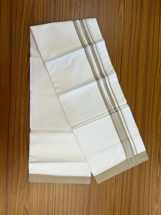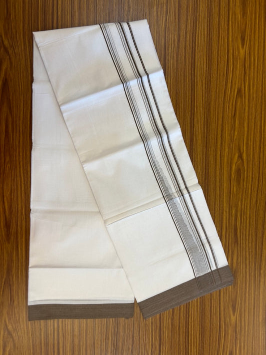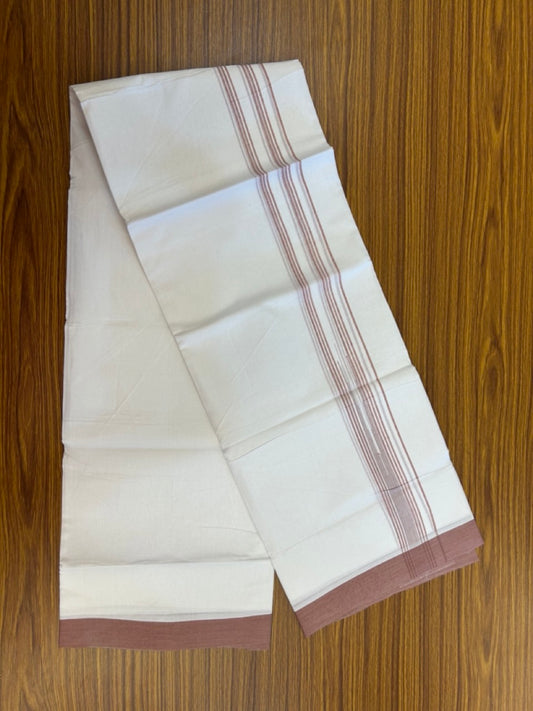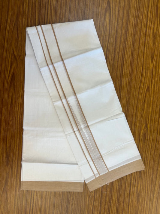 20% Discount ! Kaitharikada Balaramapuram 100% Pure Cotton Double Pure White Mundu/Dhoti - 100x80 - 1.75 inch Sand Brown striped chutty 3.90 mtr (8.5 muzham) - 71 KK5287 PMC