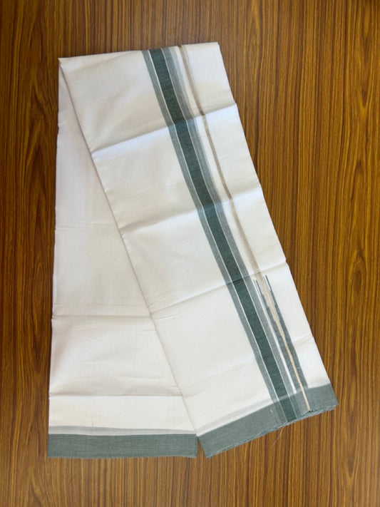 20% Discount ! Kaitharikada Balaramapuram 100% Pure Cotton Double Off white (Unbleached) Mundu/Dhoti - 100x80 - 1.75 inch Gold Kasav & Light Sage Green Stripes Chutty Kara - 3 KK5292 PMC