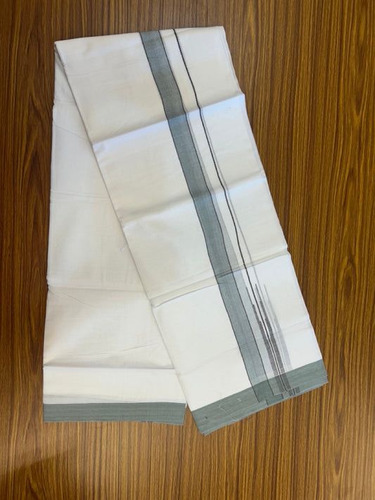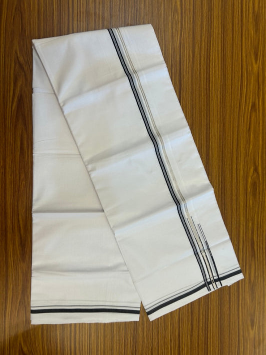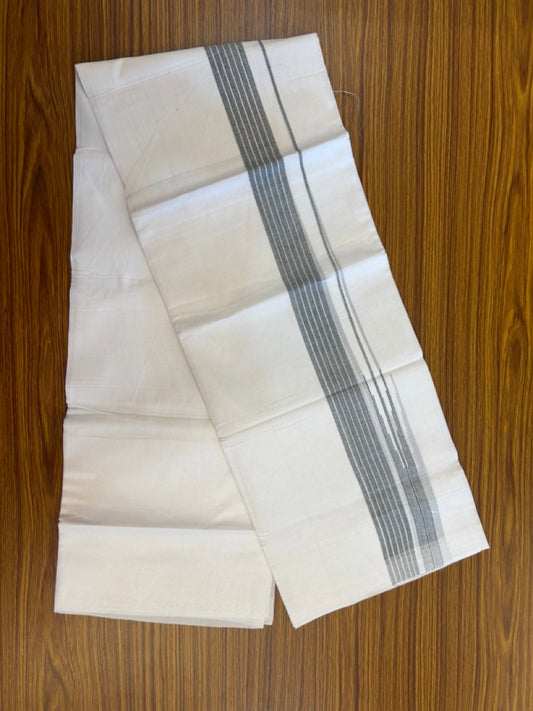 20% Discount ! Kaitharikada Balaramapuram 100% Pure Cotton Double Pure White Mundu/Dhoti - 100x80 - 1.5 inch Ash Black shaded striped chutty 3.90 mtr (8.5 muzham) - 75 KK5287 PMC