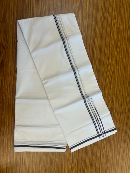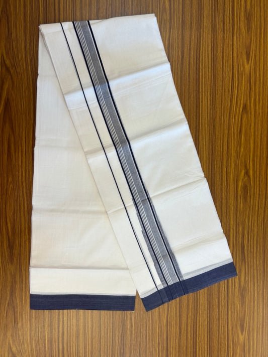 20% Discount ! Kaitharikada Balaramapuram 100% Pure Cotton Double Pure White Mundu/Dhoti - 100x80 - 1.5 inch Navy Blue shaded striped chutty 3.90 mtr (8.5 muzham) - 74 KK5287 PMC