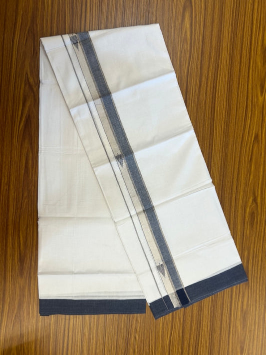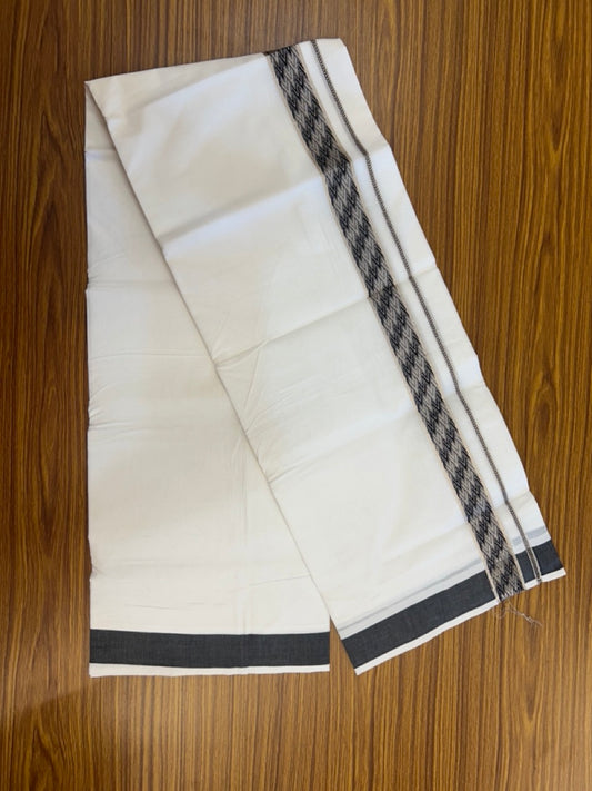 20% Discount! KaithariKada Balaramapuram 100% Cotton Double Pure white Mundu/Dhoti - 100x80 - 1.5 Inch Silver Kasav Black jacquard pattern Kara - 6 KK5291 KAI