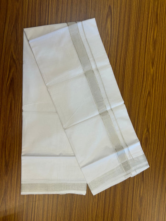 20% Discount! KaithariKada Balaramapuram 100% Cotton Double Pure White Mundu/Dhoti - 100x80 - 1.25 inch Silver Kasavu shaded Kara - 3.90 Mtr (8 Muzham) - 8 KK5291 PMC