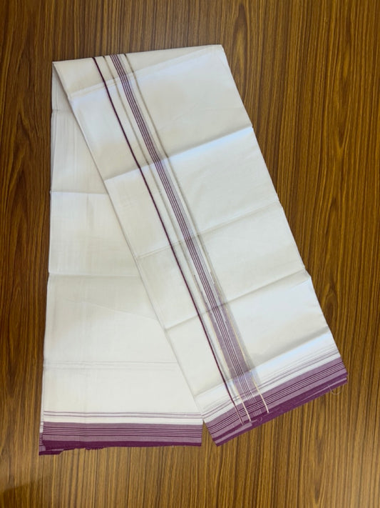 20% Discount ! Kaitharikada Balaramapuram 100% Cotton Pure White Double Mundu/Dothi - 100x80 - 1.25 inch Puliyilakkara Silver Kasav & Light Magenta Striped Chutty Kara 3.90 mtr (8 muzham) - 7 KK5291 VAS