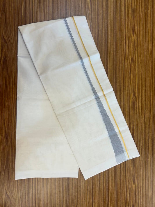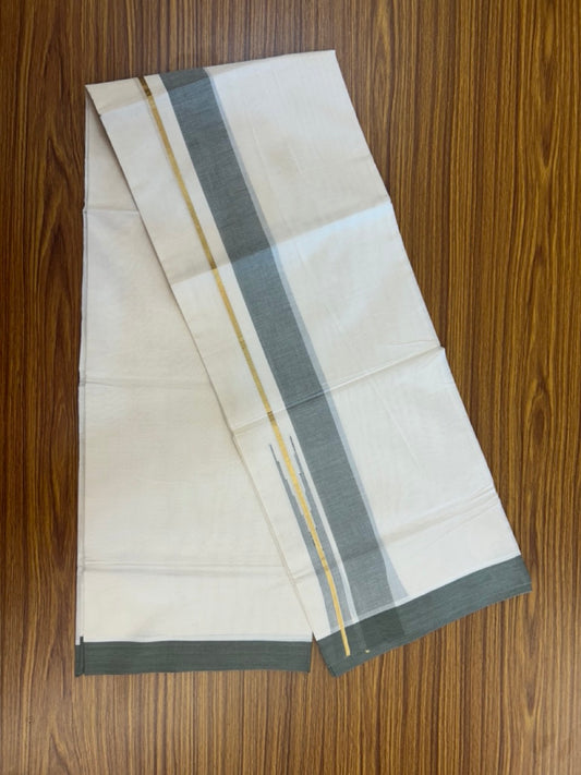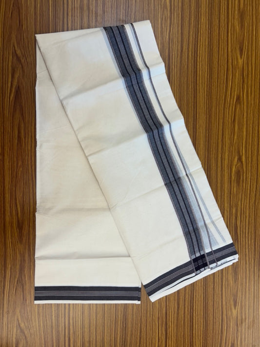 20% Discount ! Kaitharikada Balaramapuram 100% Pure Cotton Double Off white (Unbleached) Mundu/Dhoti - 100x80 - 1.5 inch Gold Kasav Ash Black Stripes Chutty Kara - 5 KK5292 PMC