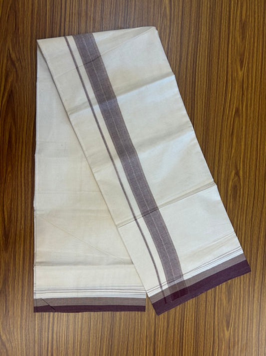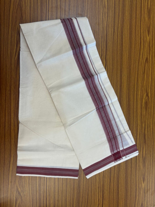20% Discount!! Kaitharikada Balaramapuram 100% Cotton Off White Double - (Unbleached) Mundu/Dhoti - 100X80 - 1.5 inch Maroon & Sand brown Shaded Kara with Stripes - 6 KK5292 VIN