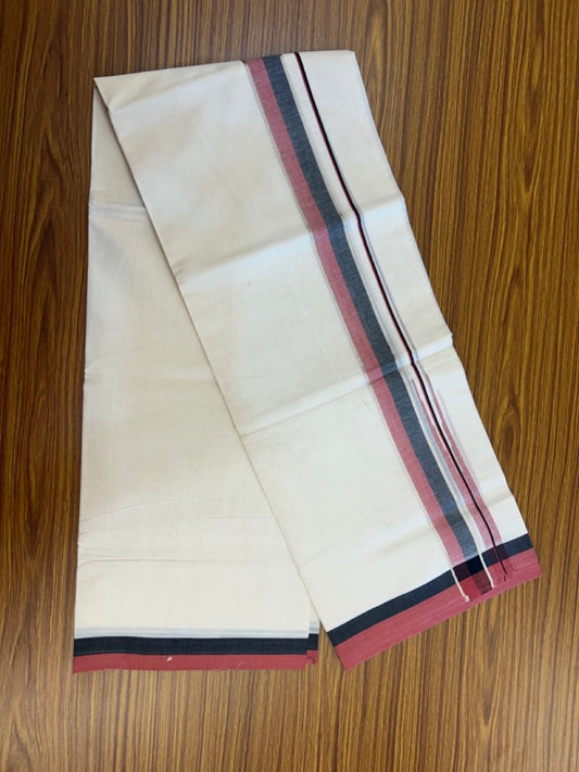 20% Discount ! Kaitharikada Balaramapuram 100% Pure Cotton Double Off white (Unbleached) Mundu/Dhoti - 100x80 - 1.5 inch Silver Kasav Black & Maroon Stripes Chutty Kara - 4 KK5292 PMC