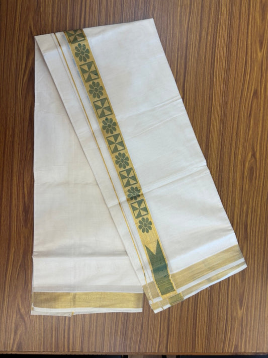 20% DISCOUNT! KaithariKada Balaramapuram Double Off White - (Ubleached) Mundu/Dhoti - Cotton mix - 80s - 1.5 inch Kasavu Green Jacquard design chutty Kara 4 mtr (8.5 Muzham) - 42 KK5284 PMC