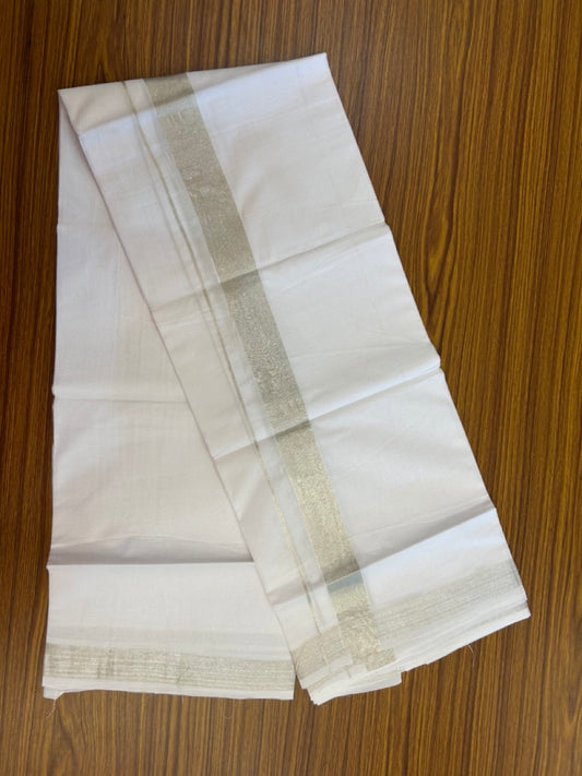 20% Discount! KaithariKada Balaramapuram 100% Cotton Double Pure White Mundu/Dhoti - 100x80 - 1.5 inch Silver Kasavu Kara - 3.90 Mtr (8 Muzham) - 15 KK5287 PMC