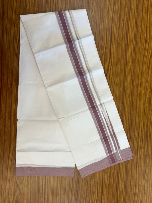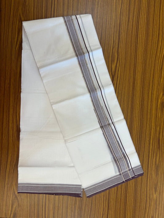 20% Discount ! KaithariKada Balaramapuram 100% Cotton Pure white Double Mundu/Dhoti - (100x80)s - 1.5 inch Silver Kasav & Wine Purple Shades Stripes Chutty Kara 3.90 mtr (8 muzham) - 22 KK5287 PMC