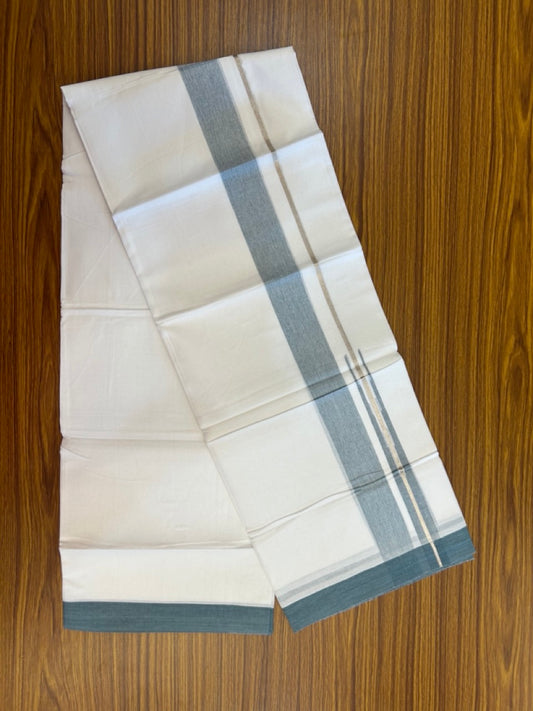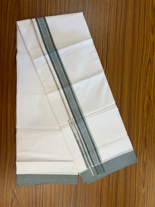 20% Discount ! KaithariKada Balaramapuram 100% Cotton Pure white Double Mundu/Dhoti - (100x80)s - 1.25 inch Silver Kasav & Green Shaded Stripes Chutty Kara 3.90 mtr (8 muzham) - 17 KK5287 PMC