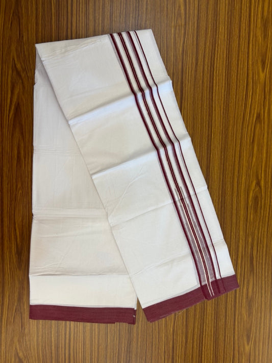 20% Discount ! KaithariKada Balaramapuram 100% Cotton Pure white Double Mundu/Dhoti - (100x80)s - 1.5 inch Silver Kasav & Maroon Shades Stripes Chutty Kara 3.90 mtr (8 muzham) - 20 KK5287 PMC