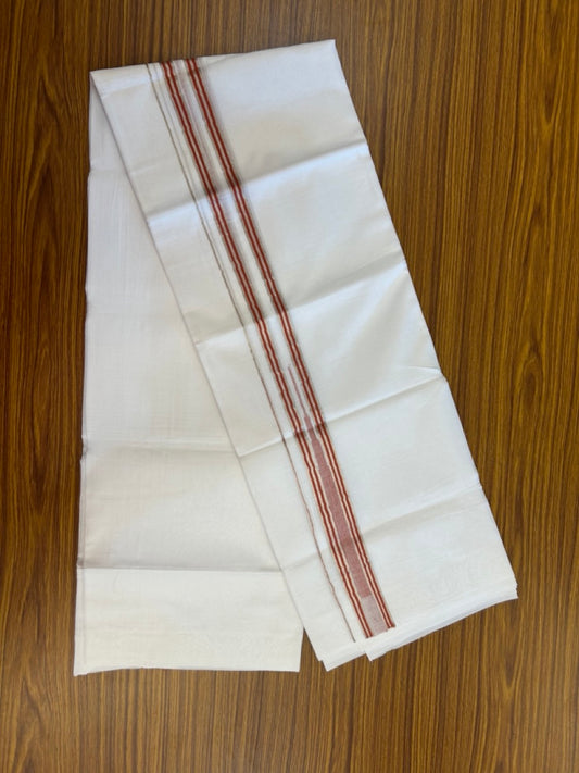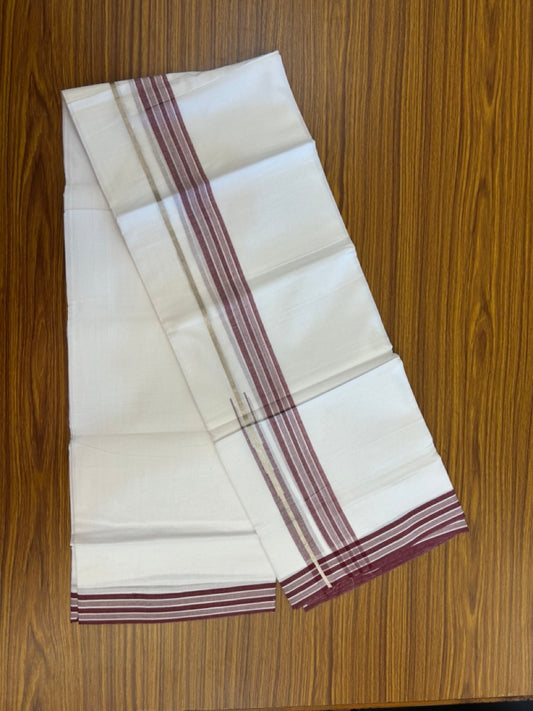 20% Discount ! KaithariKada Balaramapuram 100% Cotton Pure white Double Mundu/Dhoti - (100x80)s - 1.5 inch Silver Kasav & Maroon Shaded Stripes Chutty Kara 3.90 mtr (8 muzham) - 18 KK5287 PMC