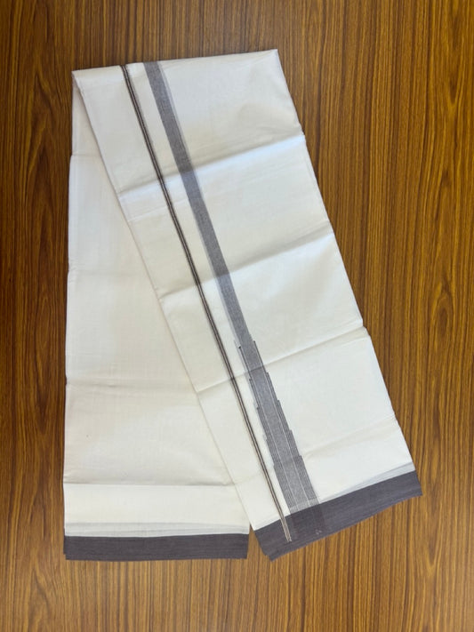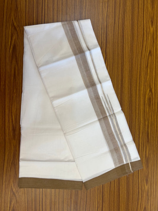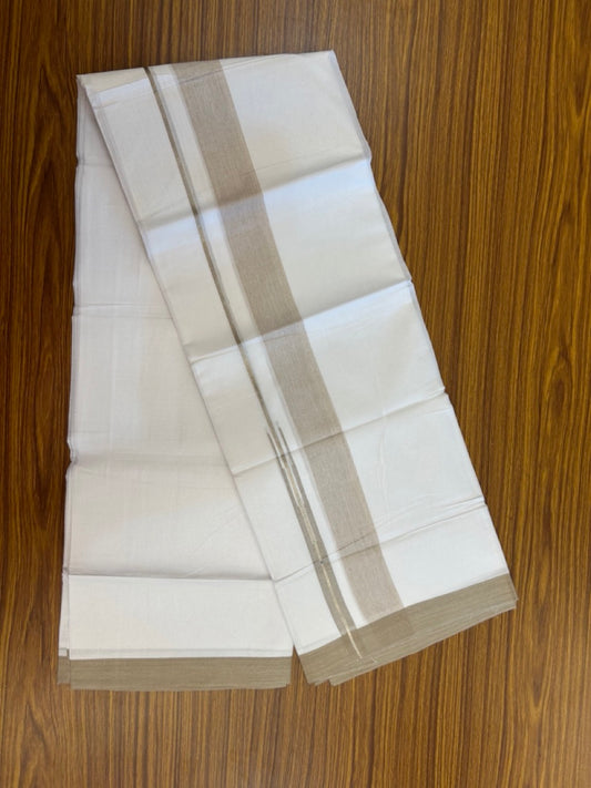 20% Discount ! KaithariKada Balaramapuram 100% Cotton Pure white Double Mundu/Dhoti - (100x80)s - 1.5 inch Silver Kasav & Light Brown Shades Stripes Chutty Kara 3.90 mtr (8 muzham) - 23 KK5287 PMC