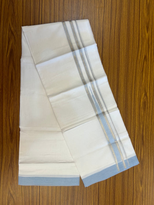 20% Discount ! KaithariKada Balaramapuram 100% Cotton Pure white Double Mundu/Dhoti - (100x80)s - 1.5 inch Silver Kasav & Light Sky Blue Shades Stripes Chutty Kara 3.90 mtr (8 muzham) - 24 KK5287 PMC