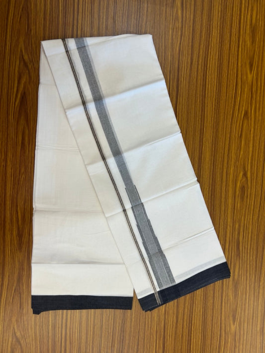20% Discount ! KaithariKada Balaramapuram 100% Cotton Pure white Double Mundu/Dhoti - (100x80)s - 1.5 inch Silver Kasav & Black Stripes Chutty Kara 3.90 mtr (8 muzham) - 26 KK5287 PMC