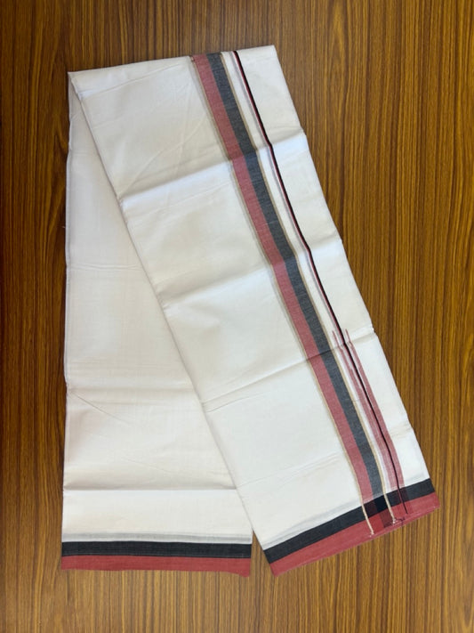 20% Discount ! Kaitharikada Balaramapuram 100% Pure Cotton Double Pure White Mundu/Dhoti - 100x80 - 1.5 inch Silver Kasav Black & Maroon Shaded Stripes Chutty Kara 3.90 mtr (8.5 muzham) - 39 KK5287 PMC