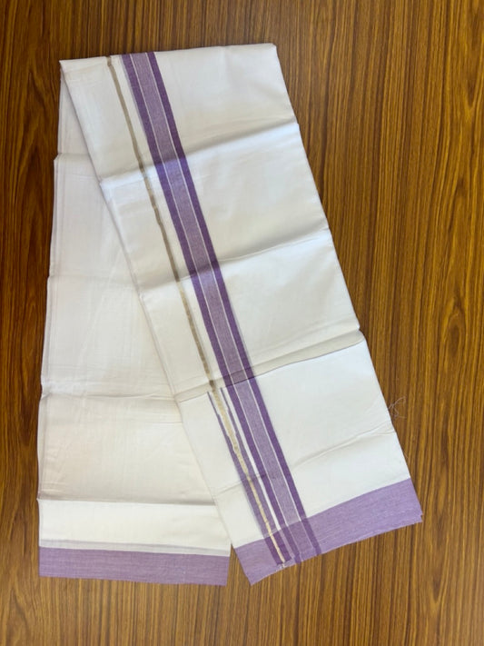 20% Discount ! KaithariKada Balaramapuram 100% Cotton Pure white Double Mundu/Dhoti - (100x80)s - 1.5 inch Silver Kasav & Matte Purple Stripes Chutty Kara 3.90 mtr (8 muzham) - 27 KK5287 PMC