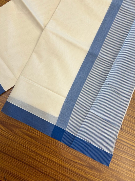21% Discount! KaithariKada Balaramapuram 100% Cotton Off white (Unbleached) Double Mundu/Dhoti - 100x80 - 7.25 inch Blue Stripes Kara 4 mtr (8.5 muzham) - 33 KK5284 PMC