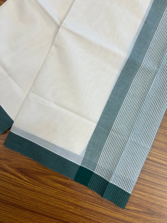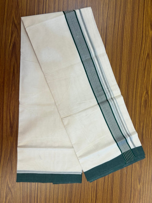 20% Discount! KaithariKada Balaramapuram Pure Cotton Double Off White Mundu/Dhoti - 100x80 - 1.75 Inch Silver Kasav & Dark Green Stripes Kara 4 mtr (8.5 Muzham) - 18 KK5284 PMC