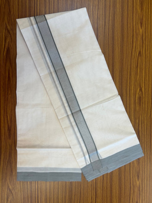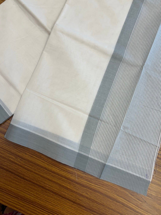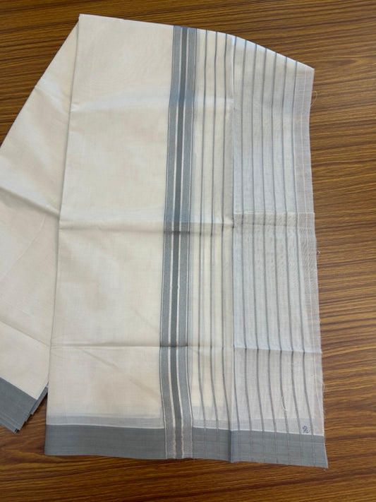 20% Discount! KaithariKada Balaramapuram Pure Cotton Double Off White Mundu/Dhoti - 100x80 - 1.75 Inch Silver Kasav & Grey Stripes Kara 4 mtr (8.5 Muzham) - 26 KK5284 PMC