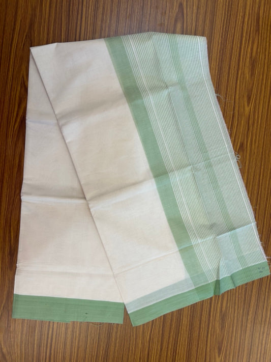21% Discount! KaithariKada Balaramapuram 100% Cotton Off white (Unbleached) Double Mundu/Dhoti - 100x80 - 7.25 inch Pista Green Stripes Kara 4 mtr (8.5 muzham) - 35 KK5284 PMC