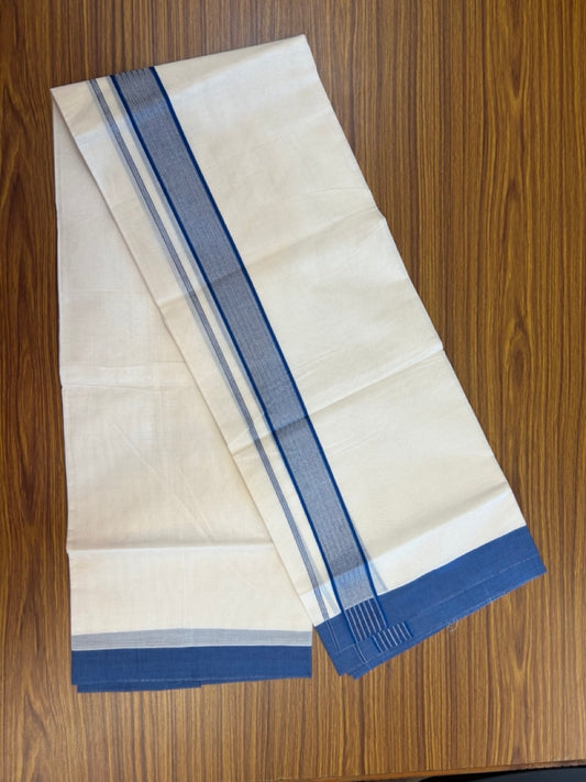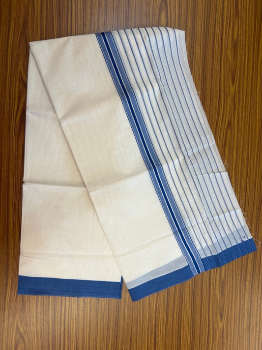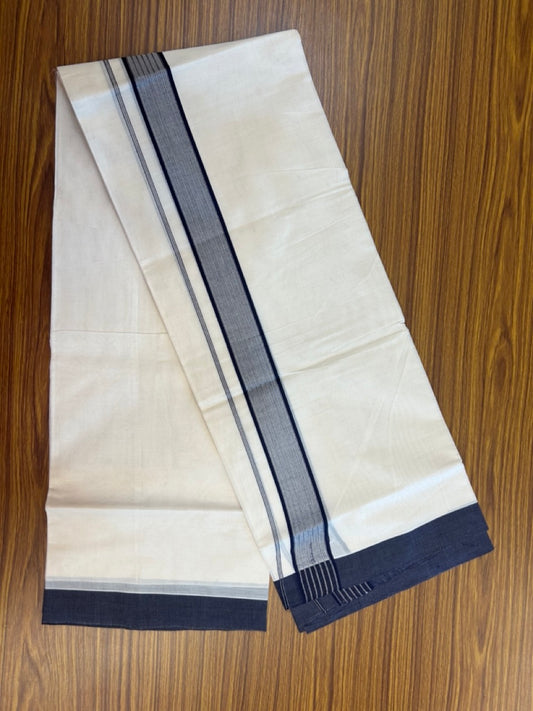 20% Discount! KaithariKada Balaramapuram Pure Cotton Double Off White Mundu/Dhoti - 100x80 - 1.75 Inch Silver Kasav & Navy Blue Stripes Kara 4 mtr (8.5 Muzham) - 25 KK5284 PMC