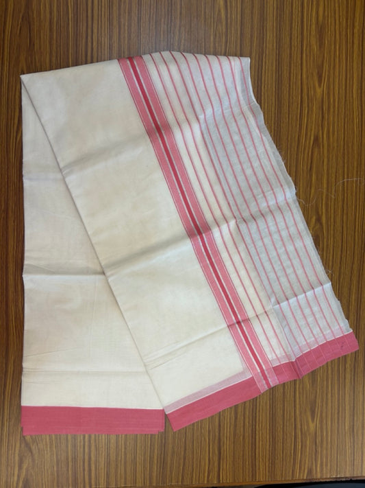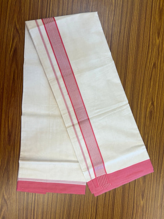 21% Discount! KaithariKada Balaramapuram 100% Cotton Off white (Unbleached) Double Mundu/Dhoti - 100x80 - 7.25 inch Dark Pink Stripes Kara 4 mtr (8.5 muzham) - 36 KK5284 PMC