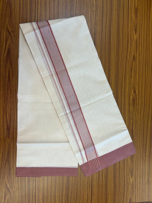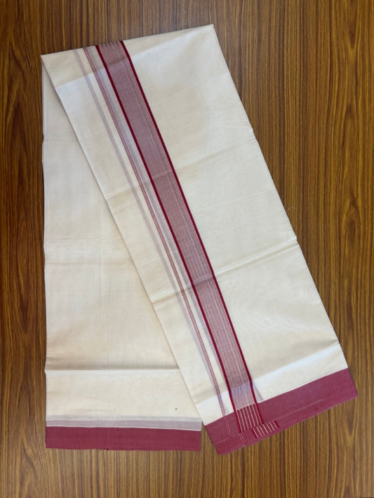 20% Discount! KaithariKada Balaramapuram Pure Cotton Double Off White Mundu/Dhoti - 100x80 - 1.75 Inch Silver Kasav & Reddish Maroon Stripes Kara 4 mtr (8.5 Muzham) - 24 KK5284 PMC