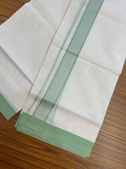 20% Discount! KaithariKada Balaramapuram Pure Cotton Double Off White Mundu/Dhoti - 100x80 - 1.75 Inch Silver Kasav & Light Green Stripes Kara 4 mtr (8.5 Muzham) - 19 KK5284 PMC