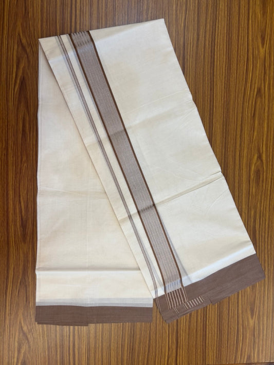 20% Discount! KaithariKada Balaramapuram Pure Cotton Double Off White Mundu/Dhoti - 100x80 - 1.75 Inch Silver Kasav & Brown Stripes Kara 4 mtr (8.5 Muzham) - 20 KK5284 PMC