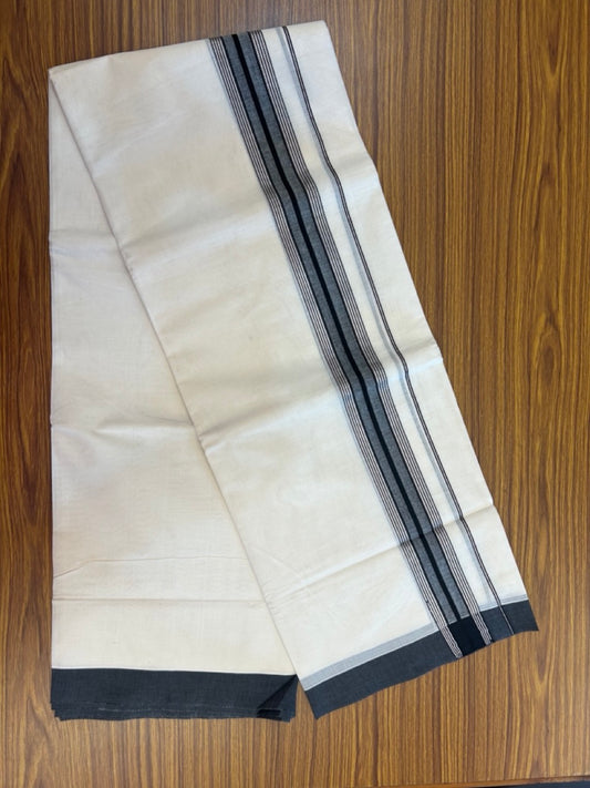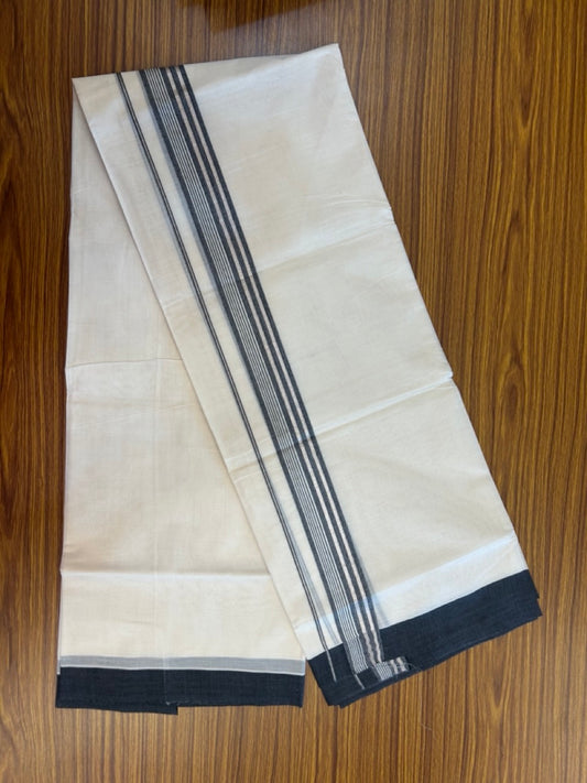 20% Discount! KaithariKada Balaramapuram Pure Cotton Double Off White Mundu/Dhoti - 100x80 - 1.75 Inch Silver Kasav & Black Shaded Stripes Kara 4 mtr (8.5 Muzham) - 28 KK5284 PMC