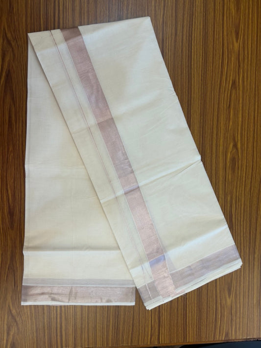 20% Discount! KaithariKada Balaramapuram Pure Cotton Double Off White Mundu/Dhoti - 100x80 - 1.75 Inch Silver Kasav & Dusty Peach Stripes Kara 4 mtr (8.5 Muzham) - 22 KK5284 PMC